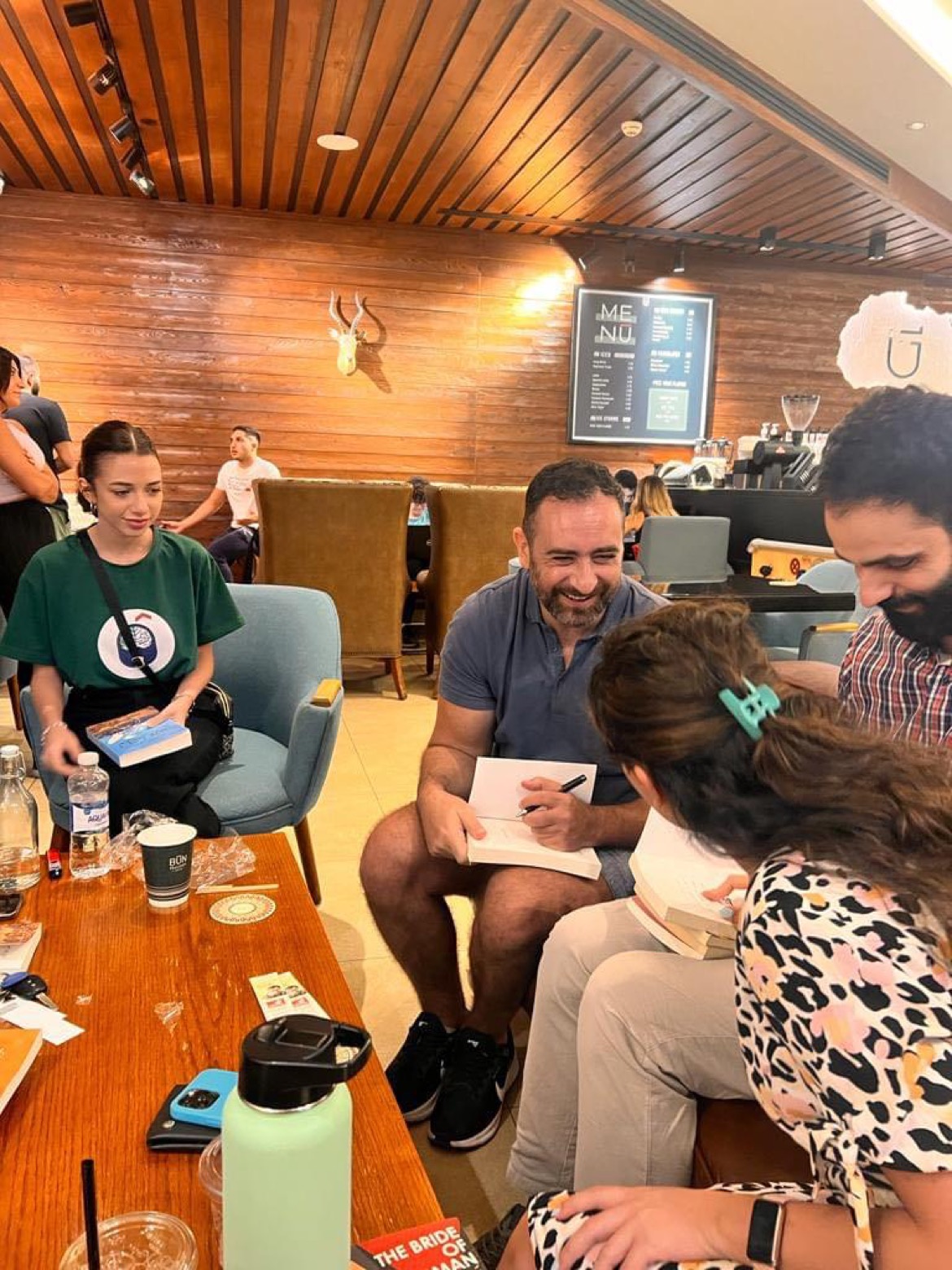 تواصلت معي منى قبل شهر تقريباً من هذا اللقاء، وقامت مشكورة بالترتيب له في قاعة مميّزة في فندق فيرمونت عمّان مع مجموعة مميزة من حوالي ٣٠ سيّدة. أمّنت لهن مُنى نسخ من الرواية وقاموا بقراءتها والتحضير معاً لمناقشة فاقت كل توقعاتي حيث قدمت المشاركات قراءات ومراجعات شاملة للرواية خلال الجلسة. سُعدت بالتعرف إلى مُنى وكافة السيّدات اللواتي حضرن. كذلك سُعدت برؤية ذلك الزخم الثقافي في عمّان، وتركني أتساءل عن سر انتشار نوادي الكتاب التي تديرها سيّدات وتضم أعداد كبيرة من النساء. أين هم رجال الأردن من الزخم الثقافي الحاصل؟ أحي النساء على تصديهن للمشهد الثقافي وأتمنّى رؤية المزيد من الرجال في هذه اللقاءات