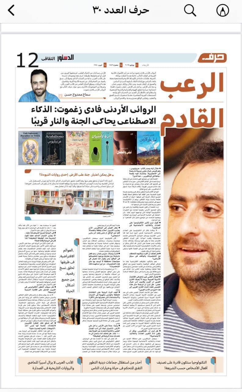 Interview about my latest novel in Addastour daily Egyptian newspaper [AR]