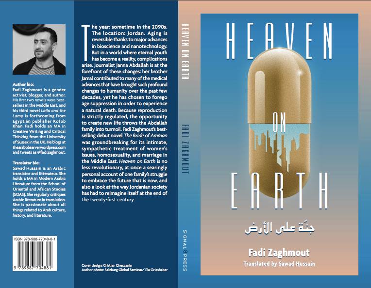 The year: sometime in the 2090s. The location: Jordan. Aging is reversible thanks to major advances in bioscience and nanotechnology. But in a world where eternal youth has become a reality, complications arise. Journalist Janna Abdallah is at the forefront of these changes: her brother Jamal contributed to many of the medical advances that have brought such profound changes to humanity over the past few decades, yet he has chosen to forego age suppression in order to experience a natural death. Because reproduction is strictly regulated, the opportunity to create new life throws the Abdallah family into turmoil. Fadi Zaghmout’s best-selling debut novel The Bride of Amman was groundbreaking for its intimate, sympathetic treatment of women’s issues, homosexuality, and marriage in the Middle East. Heaven on Earth is no less revolutionary, at once a searingly personal account of one family’s struggle to embrace the future that is now, and also a look at the way Jordanian society has had to reimagine itself at the end of the twenty-first century.